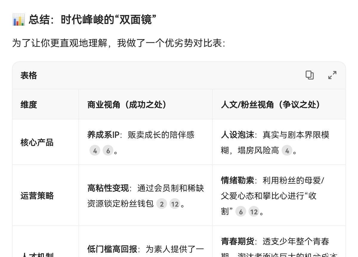 我的看法是:时代峰峻确实是中国娱乐工业化的先行者,它用一套“重资产、长周期、高绑定”的模式在荒漠中种出了树。但随着监管收紧、粉丝觉醒以及审美疲劳,这套模式正在从“闭眼赚”进入“精细化运营”的深水区。未来,如何在商业利益与艺人成长/粉丝权益之间找到新的平衡点,将是它能否继续存活的关键。